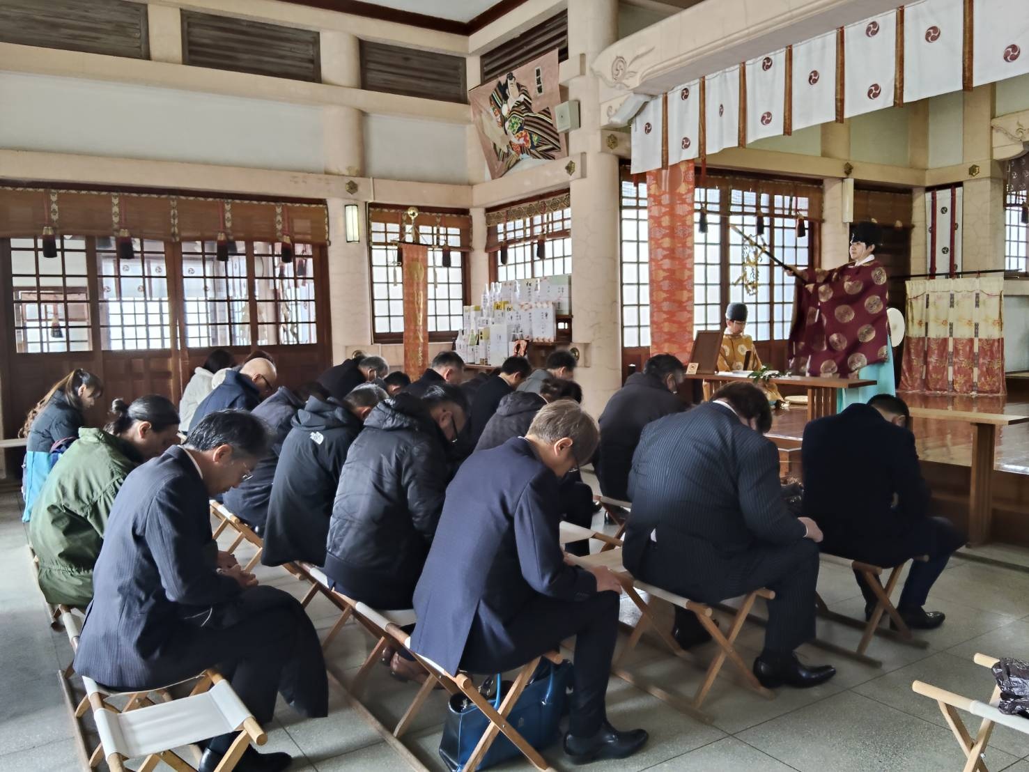 今日は初詣例会です。先ほど羽田八幡宮で家内安全、商売繁盛のご祈祷をしていただきました。皆さん初詣にはいつも行く定番の神社があると思いますが、いつもと違うところでお参りするのも何か別のご利益がありそうで良いものですね。