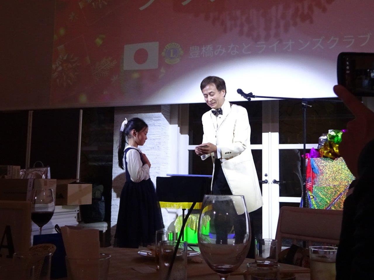 今夜はマジシャンMITSYBAとミッキー横田のマジックショー、抽選会、さらに6役から賞品提供した抽選会が行われます。せっかくのクリスマスイブのクリスマス例会なんで、1人参加のメンバーも家族で参加のメンバーも一緒に盛り上がっていきましょう!本日もどうぞよろしくお願い致します。